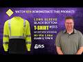The GSS is a Class 3 Hi Vis Lime Black Bottom Long Sleeve T-Shirt that is product 5113. This Tee has stretchable heat transfer tape with one front left chest pocket. With a black bottom front and moisture wicking material.